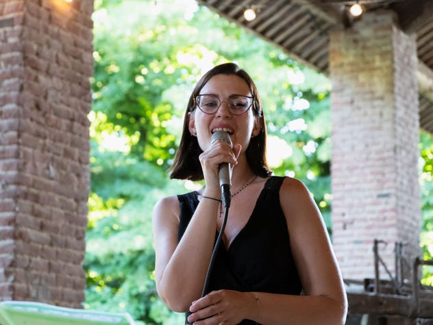 La prima comunicazione avviene tramite le note dei due strumenti e la voce della cantante, poi il seguito con applausi, ringraziamenti e sorrisi eloquenti.