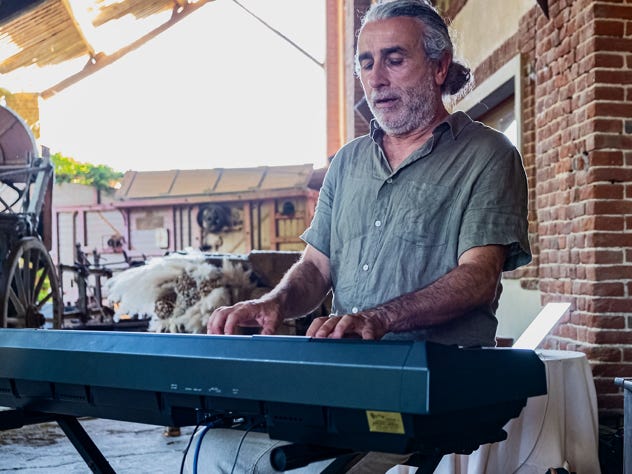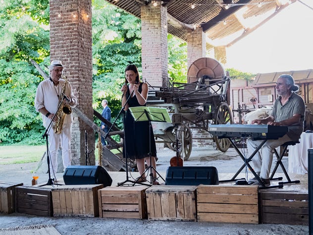 Nel fresco porticato rurale, i tavoli imbanditi offrono tutto il desiderabile in fatto di alimentazione sfiziosa con abbondante scelta per soddisfare chiunque; al terzo Spritz la musica s’impone al brusio.