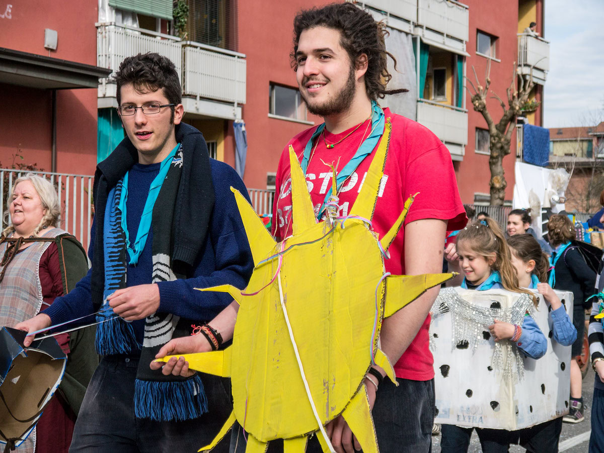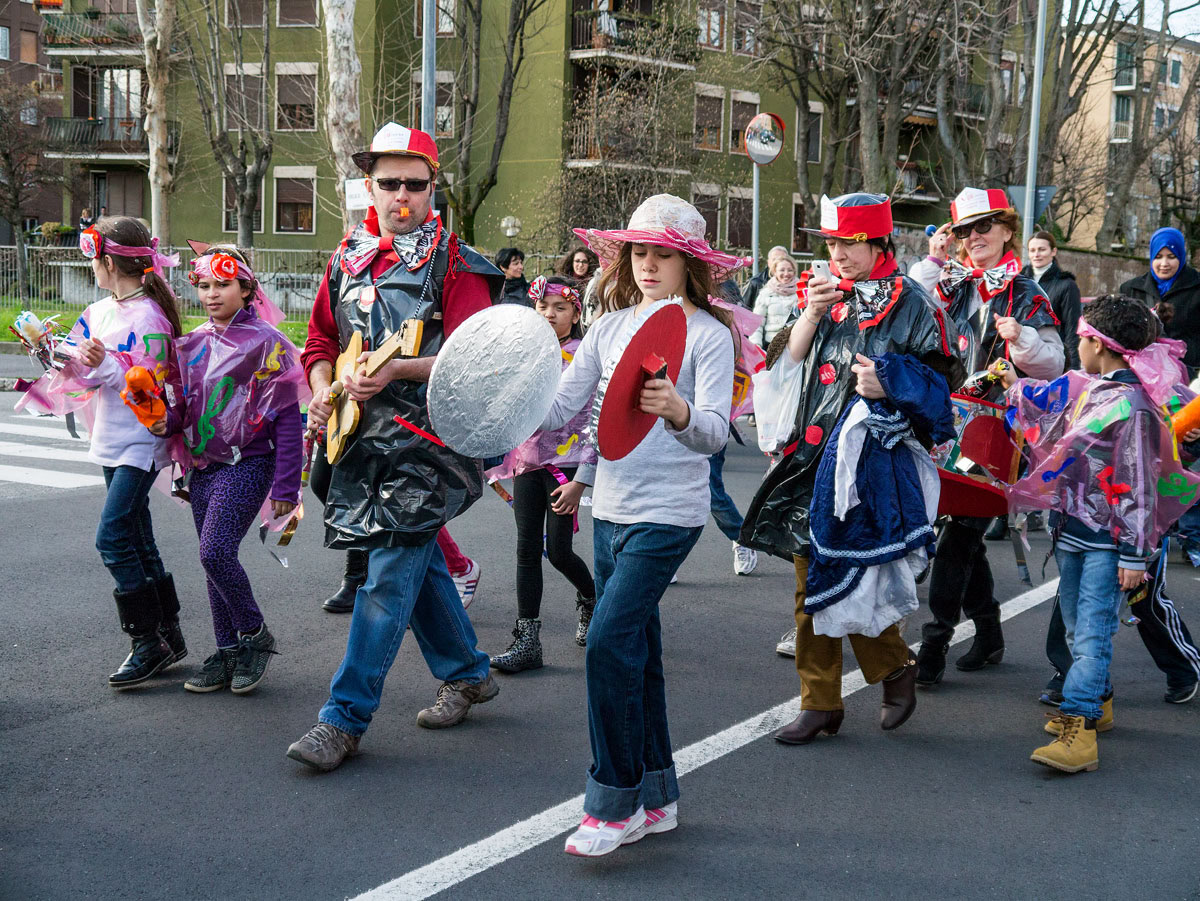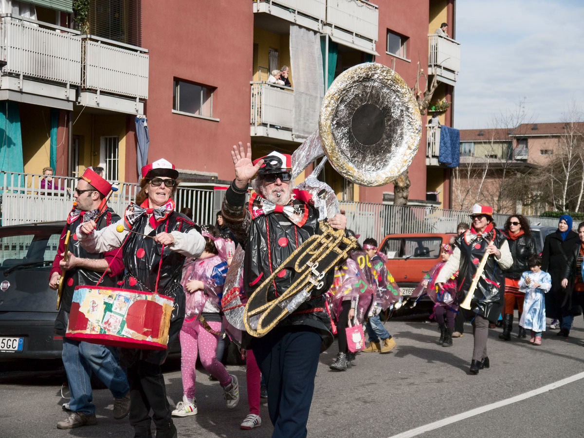 È carnevale e sorprende la vitalità nelle sfilate nella periferia nord di Milano, al quartiere Quarto Oggiaro.