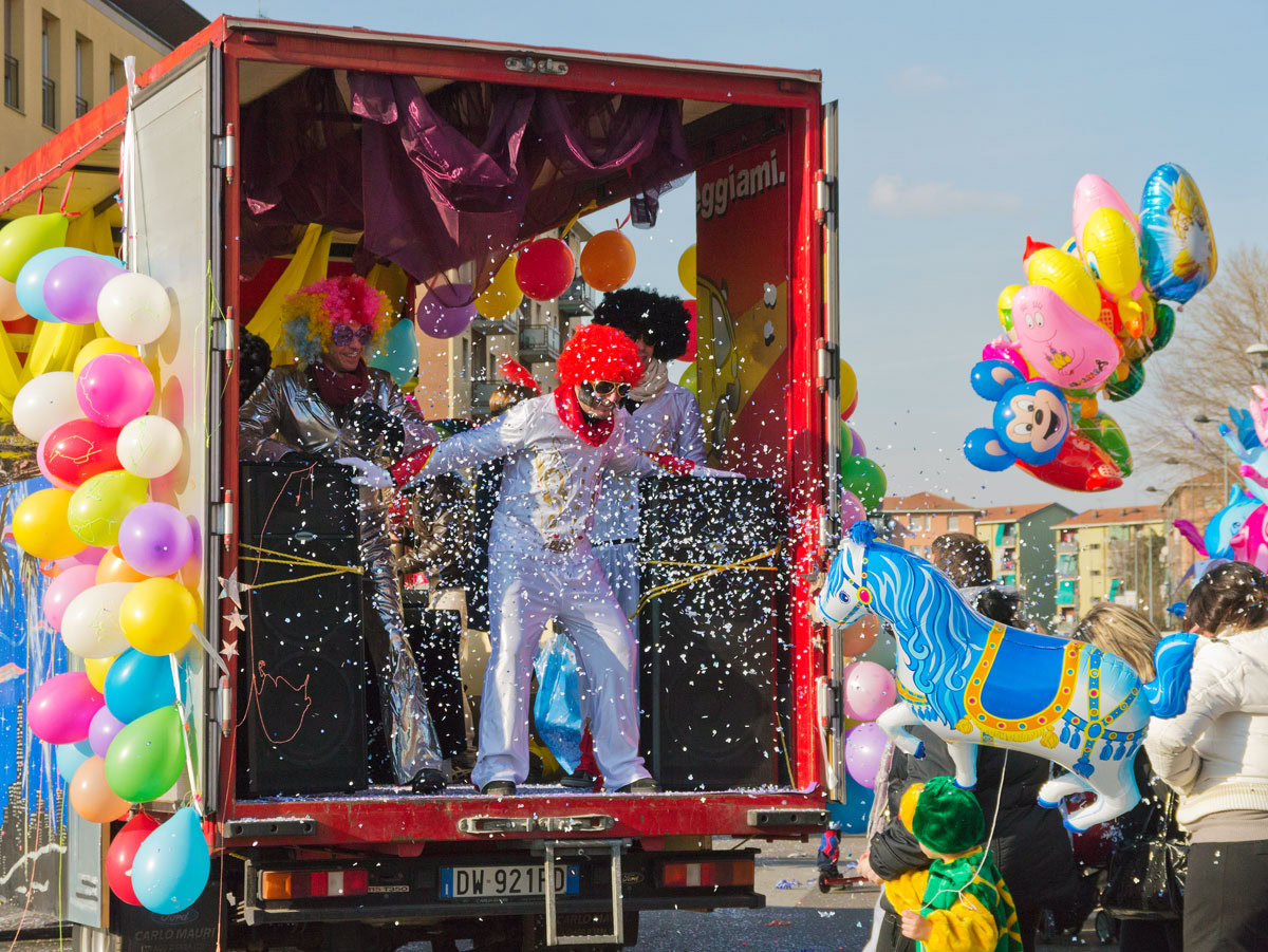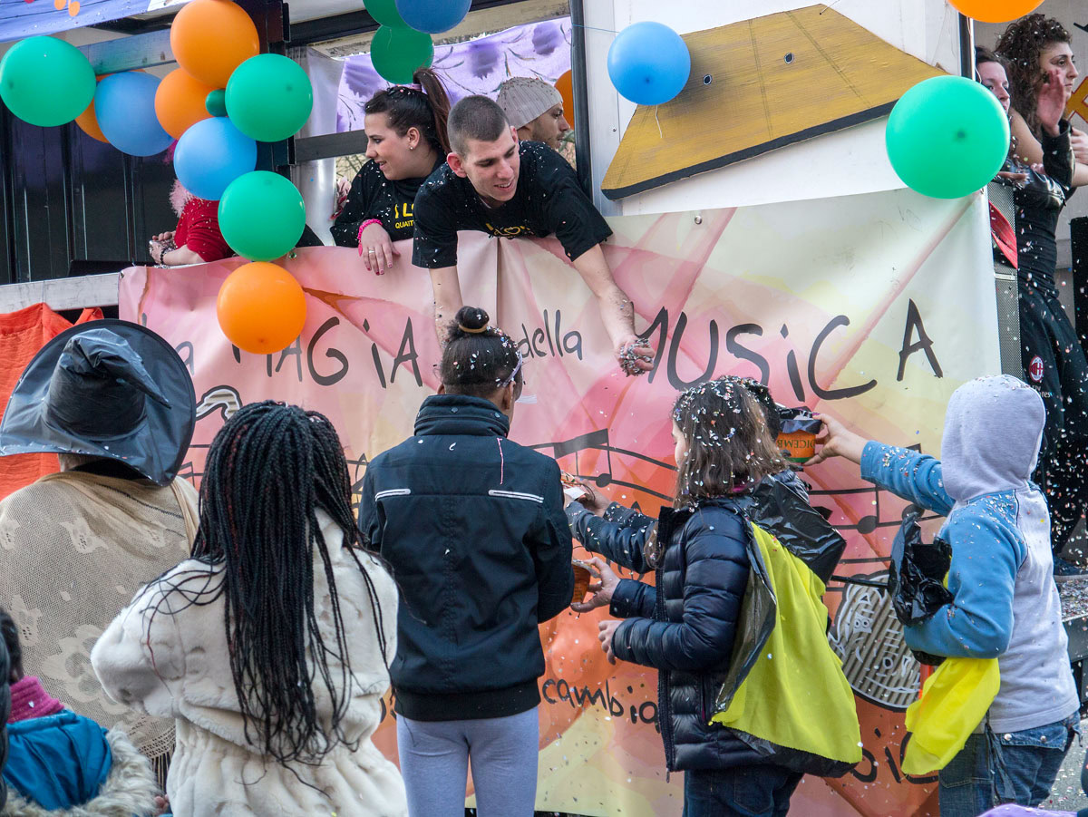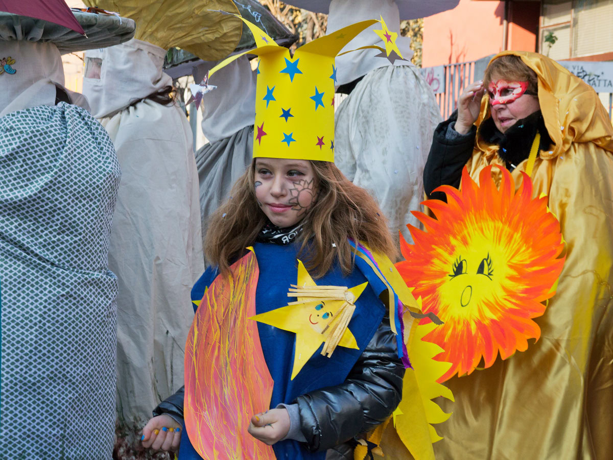 È carnevale e sorprende la vitalità nelle sfilate nella periferia nord di Milano, al quartiere Quarto Oggiaro.