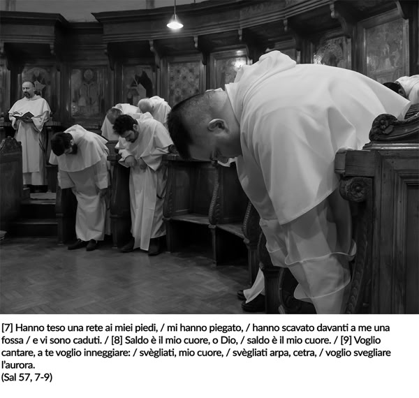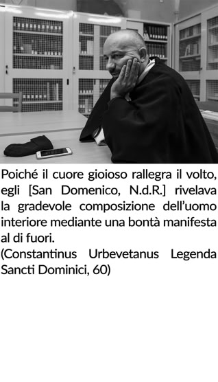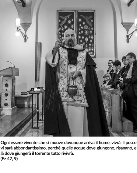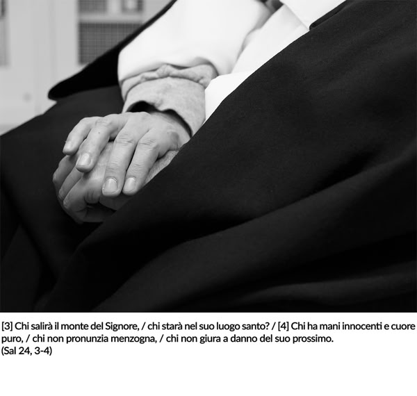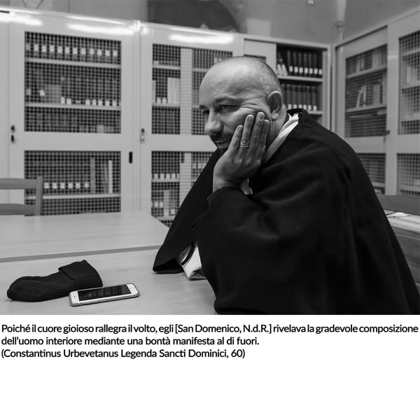 A mio giudizio, questo portfolio documenta lo spirito dell’Ordine dei Predicatori, la cui peculiarità consiste nella tensione tra la contemplazione – vissuta attraverso lo studio, la preghiera comunitaria e la meditazione personale – e la predicazione. Io ho attinto molto dall’ambito della liturgia, dalle fasi preparatorie alle